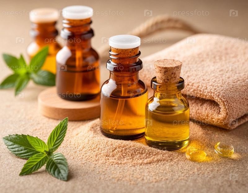 Массажные масла для СПА на бежевом фоне. Генерируется ИИ