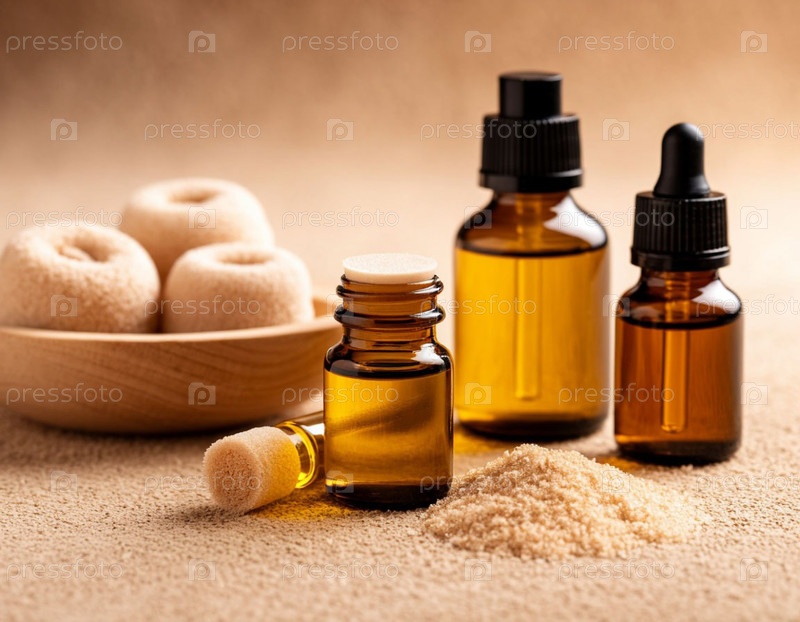 Массажные масла для СПА на бежевом фоне. Генерируется ИИ