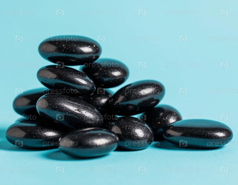 Массаж камней для спа на синем фоне. Сгенерированный ИИ