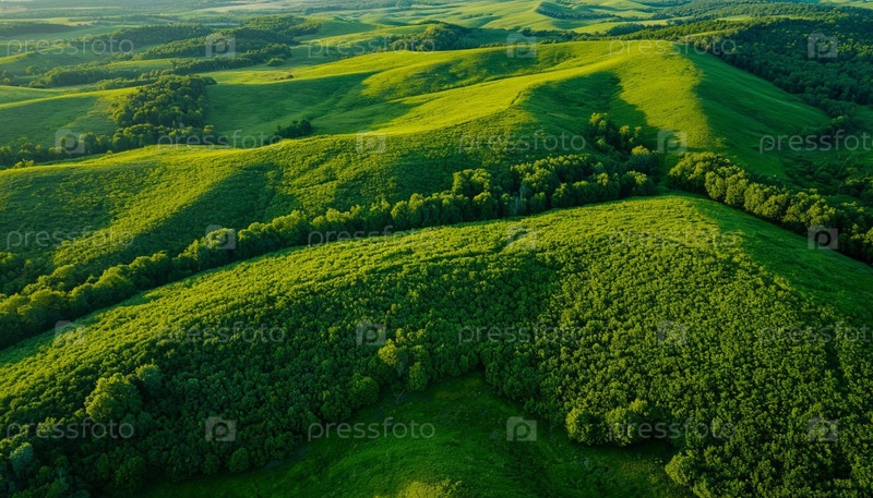 Вид с воздуха на зеленый ландшафт. Сгенерированный ИИ
