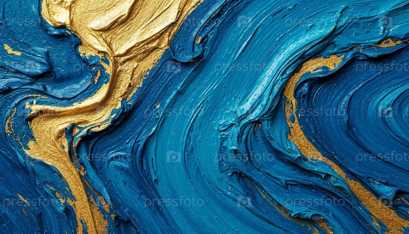 Фон, покрытый синими и золотыми красками. Сгенерированный ИИ