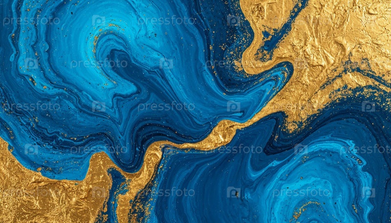 Фон, покрытый синими и золотыми красками. Сгенерированный ИИ