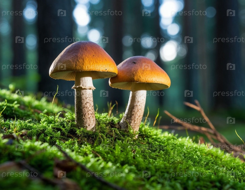 Аспенские грибы крупным планом в лесу. Генерируется ИИ