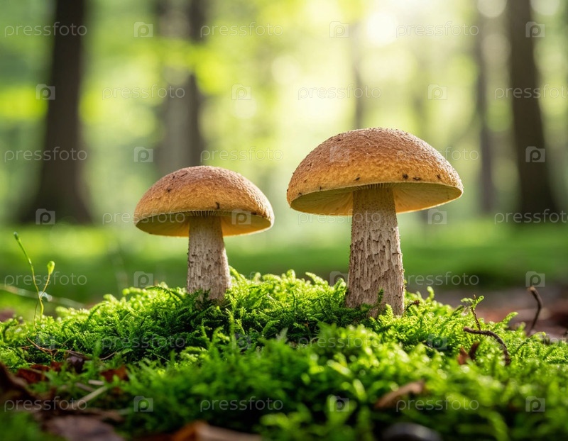 Аспенские грибы крупным планом в лесу. Генерируется ИИ