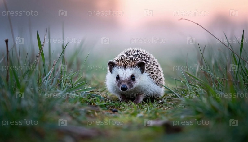 Еж на тропинке в поле в тумане. Сгенерированный ИИ