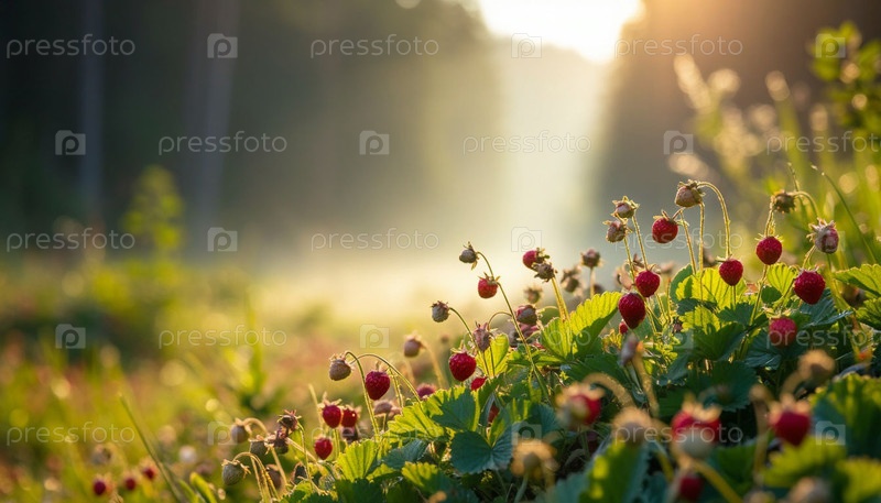 Дикая клубника на склоне холма. Сгенерированный ИИ