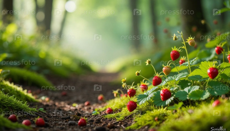 Клубника в лесу. Сгенерированный ИИ