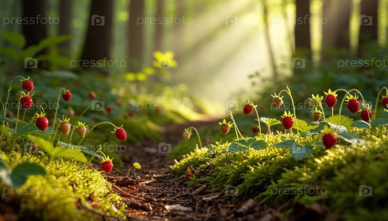 Клубника в лесу. Сгенерированный ИИ