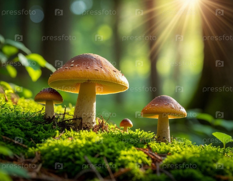 Масалтинские грибы крупным планом в лесу. Генерируется ИИ