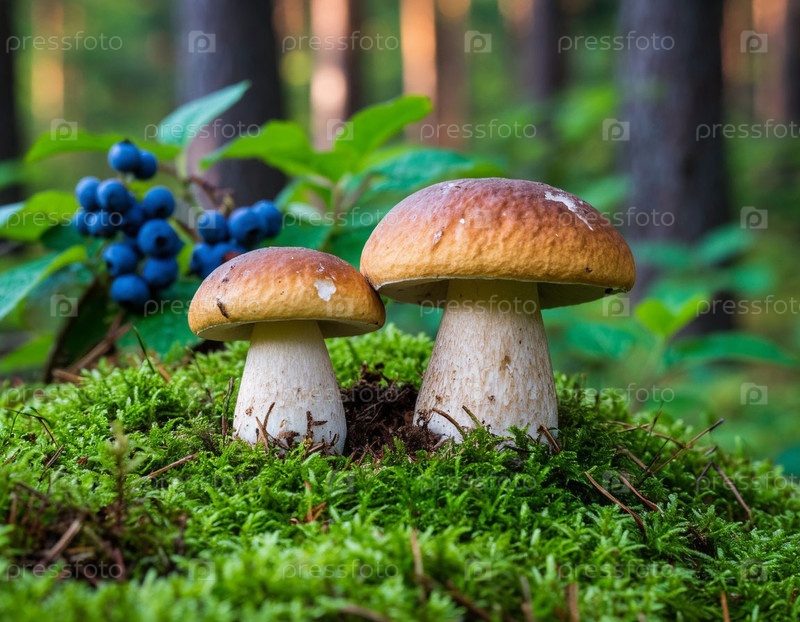 Грибы крупным планом в лесу. Генерируется ИИ