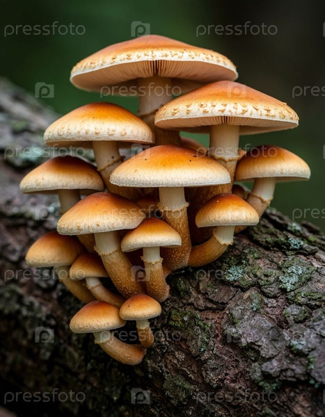 Медовые грибы на стволе дерева. Генерируется ИИ