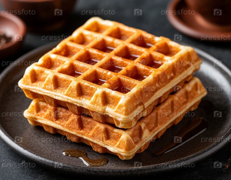 Вафли с сиропом на темном фоне. Генерируется ИИ