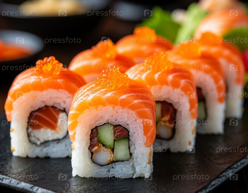 Японские роллы на столе. Сгенерированный ИИ