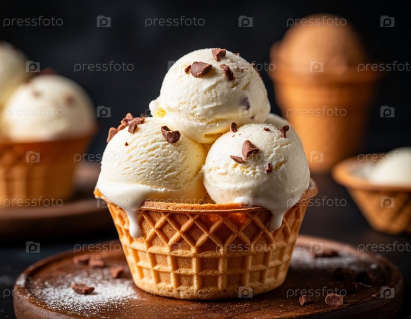 Мороженое на темном фоне. Генерируется ИИ