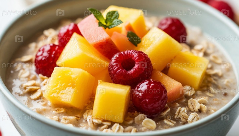 Овсянка с кусочками фруктов. Сгенерированный ИИ