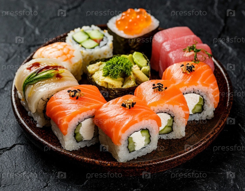 Японские роллы на столе. Генерируется ИИ