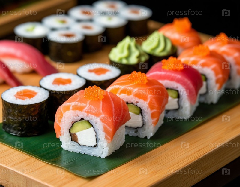 Японские роллы на столе. Генерируется ИИ