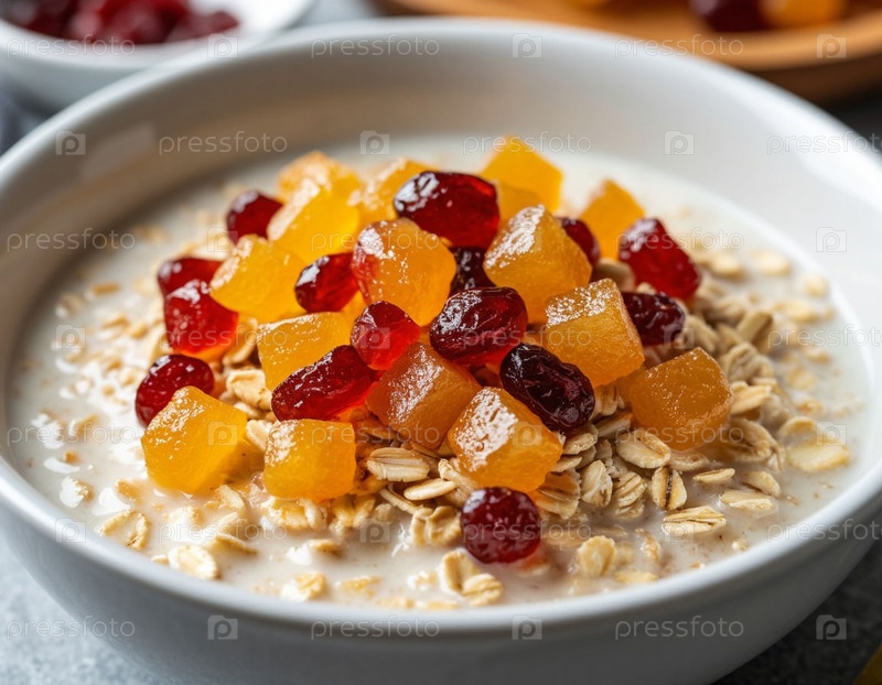 Овсянка с засахаренными фруктами. Сгенерированный ИИ