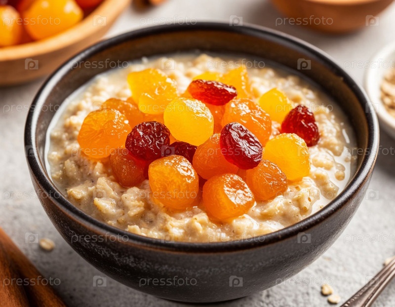 Овсянка с засахаренными фруктами. Сгенерированный ИИ