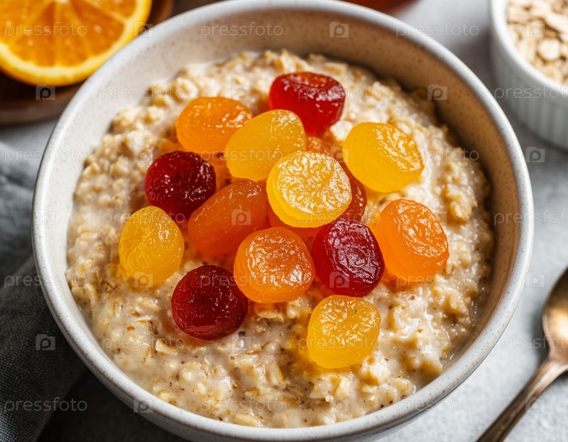 Овсянка с засахаренными фруктами. Сгенерированный ИИ