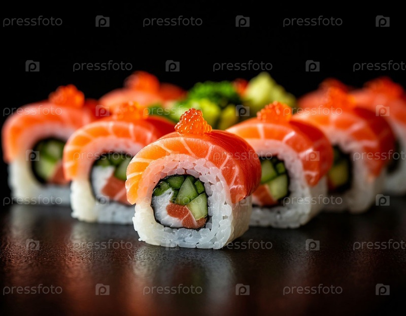 Японская еда, суши на столе. Сгенерированный ИИ