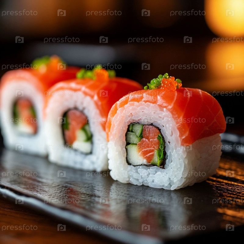 Японская еда, суши на столе. Сгенерированный ИИ