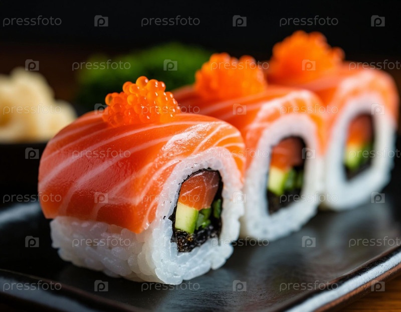 Японская еда, суши на столе. Сгенерированный ИИ