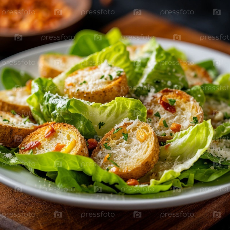 Салат Цезаря на тарелке. Сгенерированный ИИ