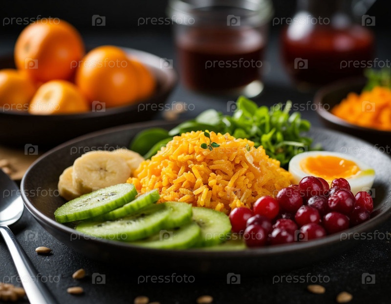 Здоровая пища для вегетарианцев, овощей и фруктов. Сгенерированный ИИ
