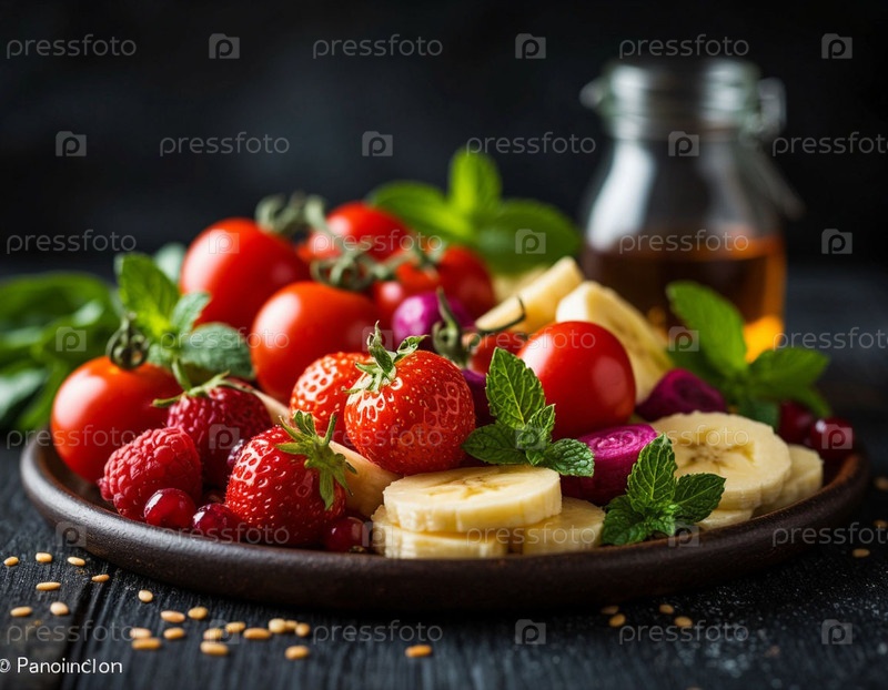 Здоровая пища для вегетарианцев, овощей и фруктов. Сгенерированный ИИ
