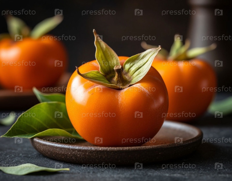 Спелая хурма на темном фоне. ИИ