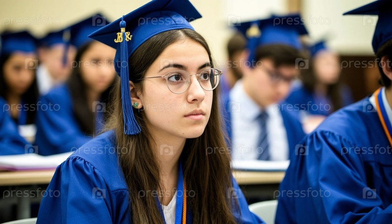 Студенты в аудитории во время экзамена института. Генерируется ИИ