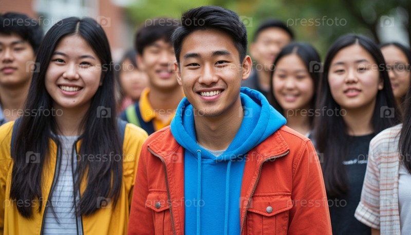 Счастливые студенты возвращаются к учебе. Образование и наука. ИИ