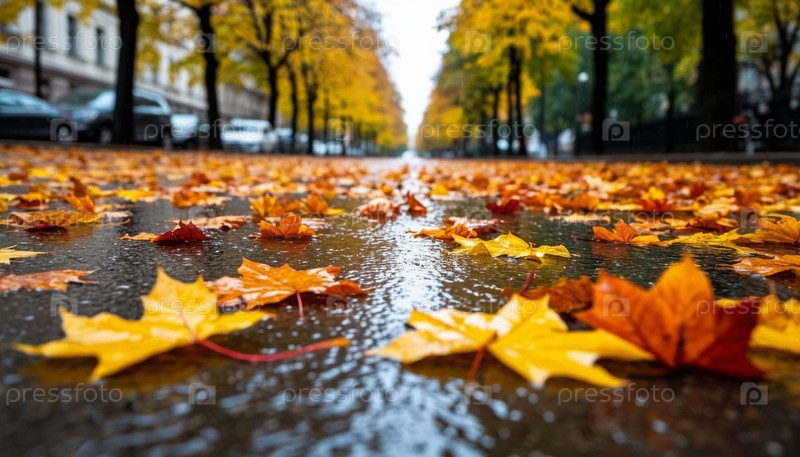 Осень уходит на дорогу после дождя