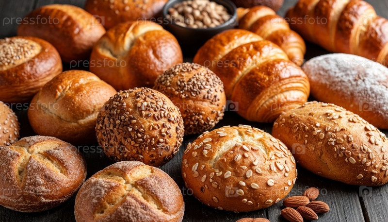 Стол с хлебом сверху на темном фоне крупным планом
