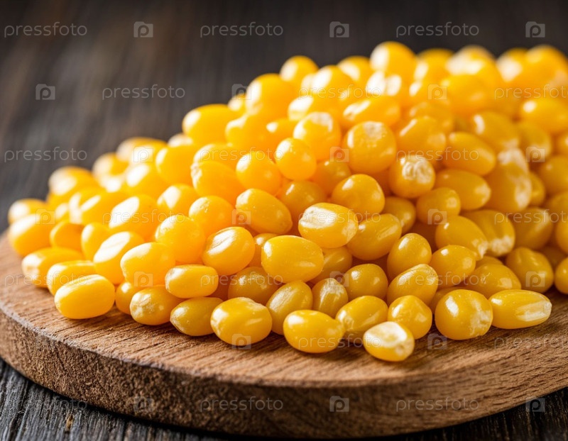 Кукурузные зерна на деревянном фоне крупным планом