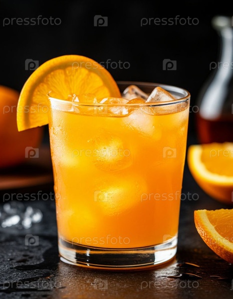 Оранжевый свежий со льдом на темном фоне. Генерируется ИИ