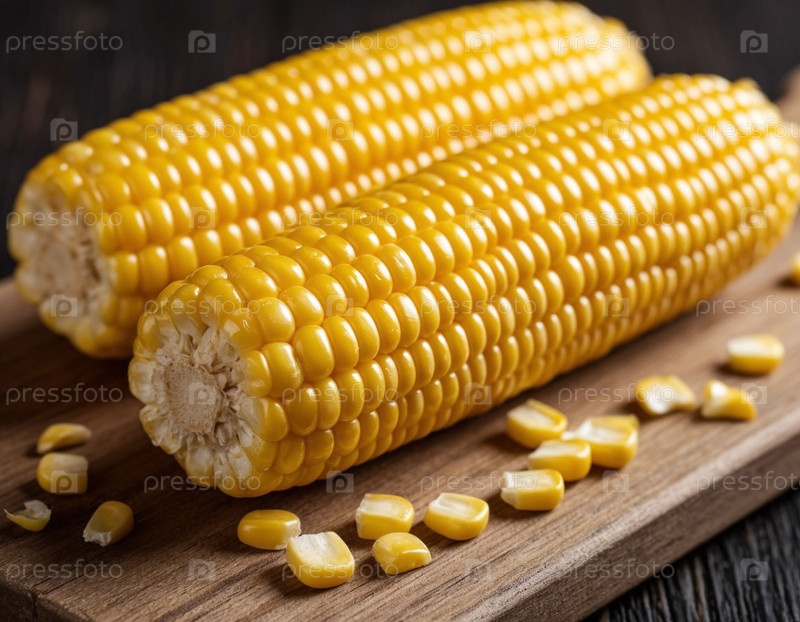 Кукурузные початки на деревянном фоне крупным планом