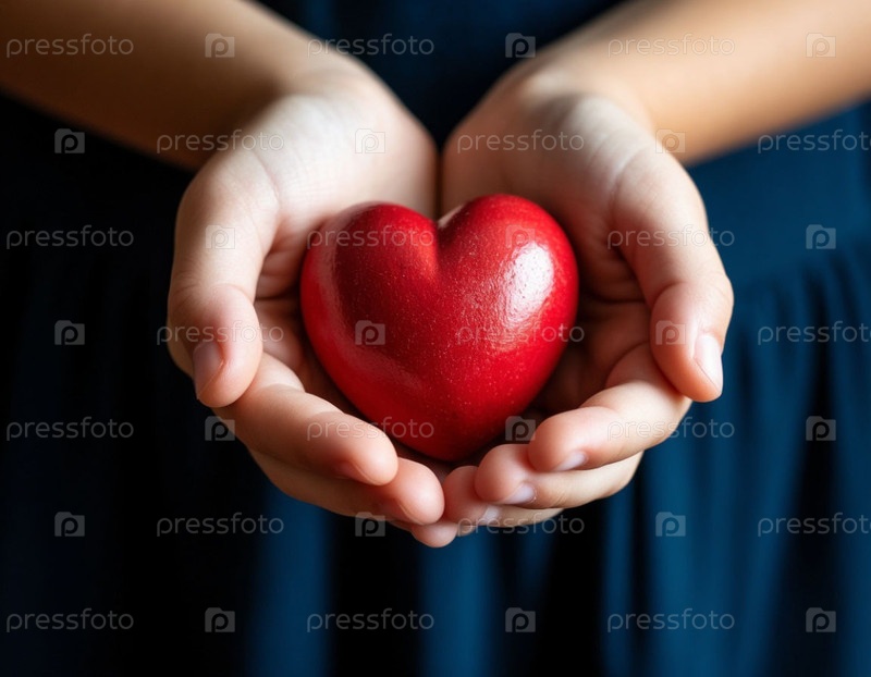 Детские руки держат сердце на темном фоне. Генерируется ИИ