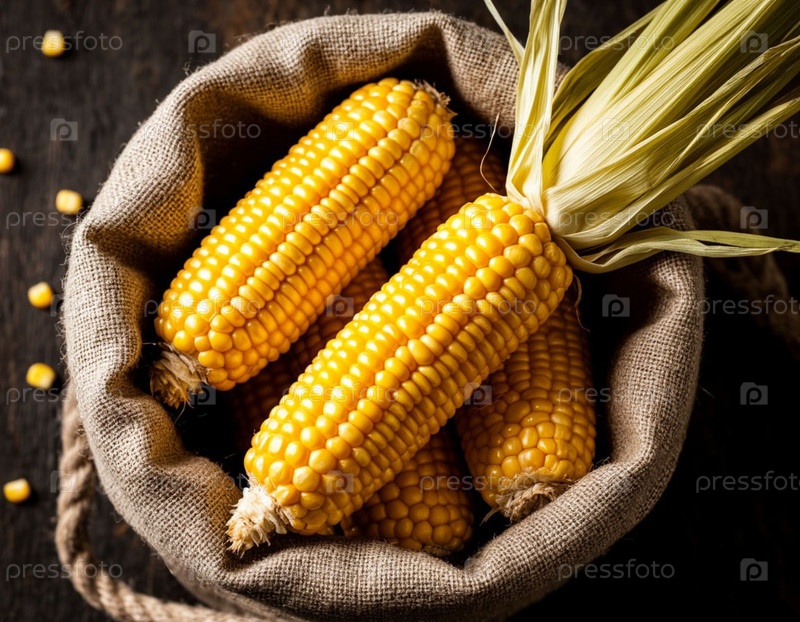 Кукурузные початки на заднем плане мешка