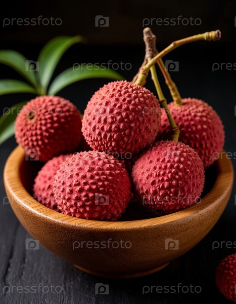 Плоды личи на темном фоне. Сгенерированный ИИ