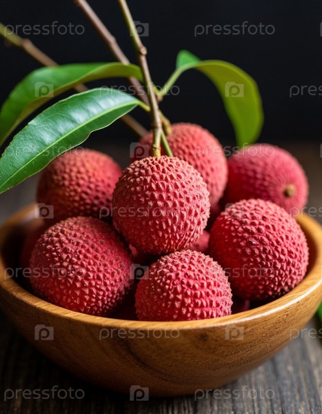 Плоды личи на темном фоне. Сгенерированный ИИ