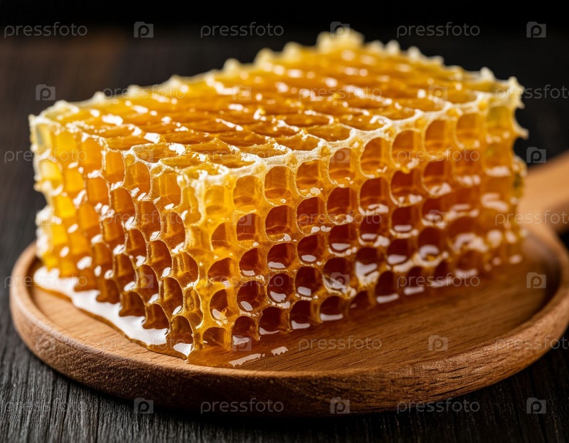 Натуральный мед в сотах на темном фоне