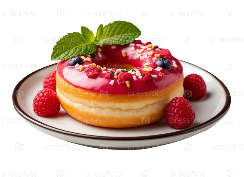 Пончик с ягодами на прозрачном изолированном фоне, сгенерированный ИИ