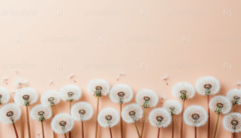Одуванчики пушистые, бежевый фон, копировальное пространство. Генерируется ИИ