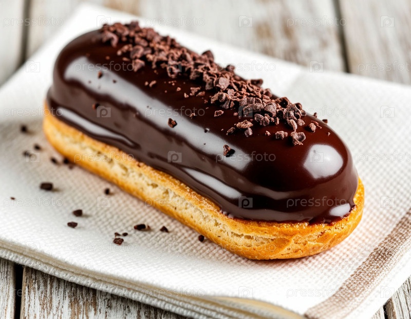 Торт Эклэра на тарелке. Сгенерированный ИИ