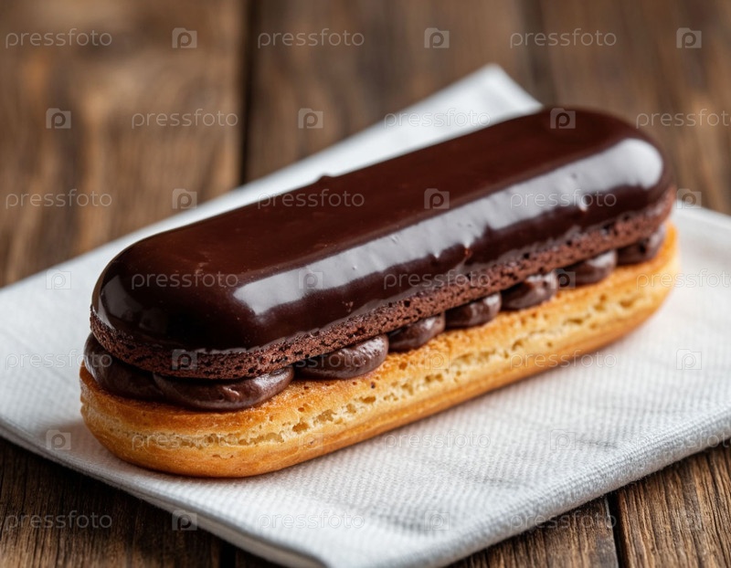 Торт Эклэра на тарелке. Сгенерированный ИИ