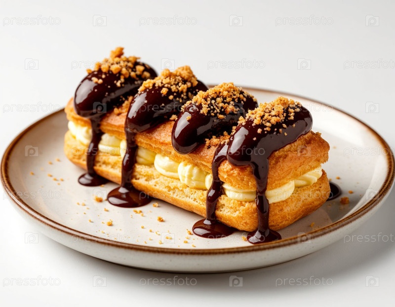 Торт Эклэра на тарелке. Сгенерированный ИИ