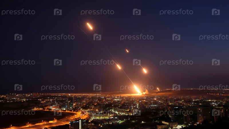 Израильская ПВО перехватывает иранские ракеты ночью над городом. Военный конфликт
