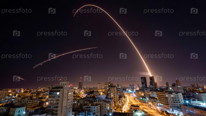Израильская ПВО перехватывает иранские ракеты ночью над городом. Военный конфликт